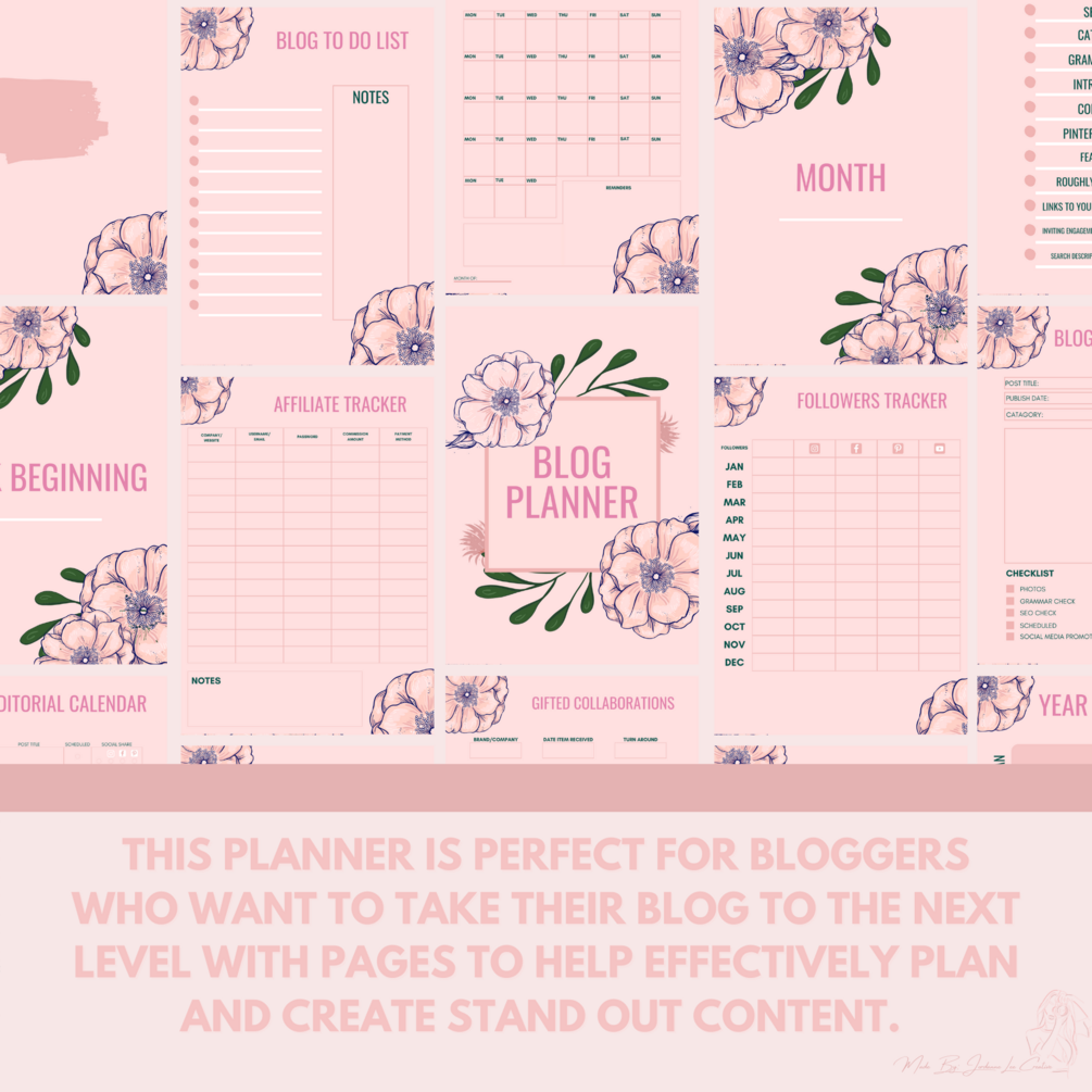 The ULTIMATE Yearly Printable Blog Planner - Blush Floral Design
