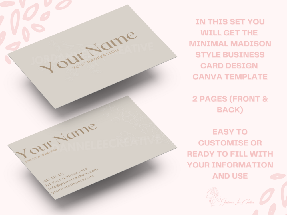 You will get 2 Page Business Card Template - Style Madison Minimal