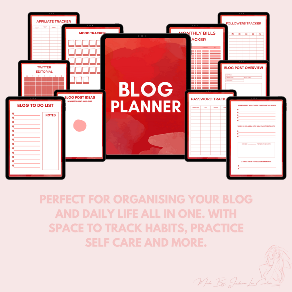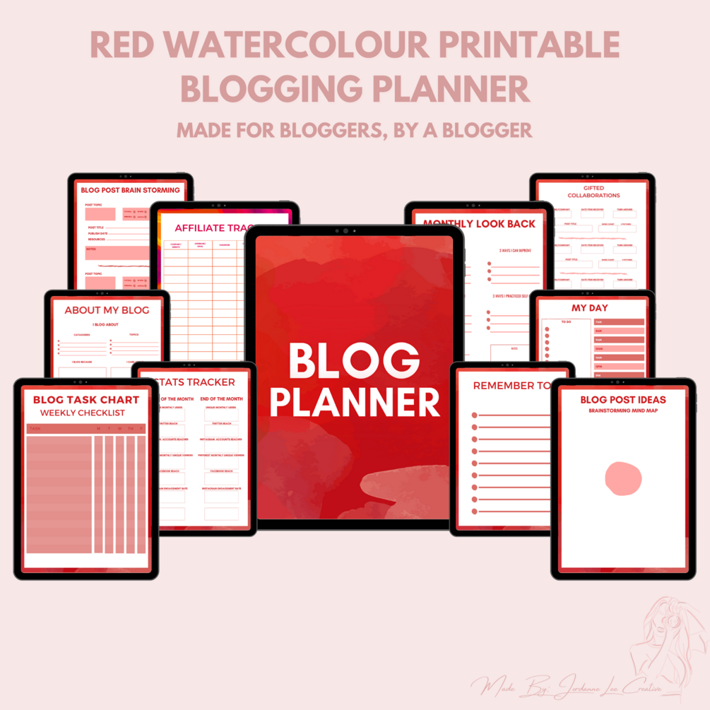 You'll get the Red Watercolour Printable Blog Planner in A5 & A4 Size